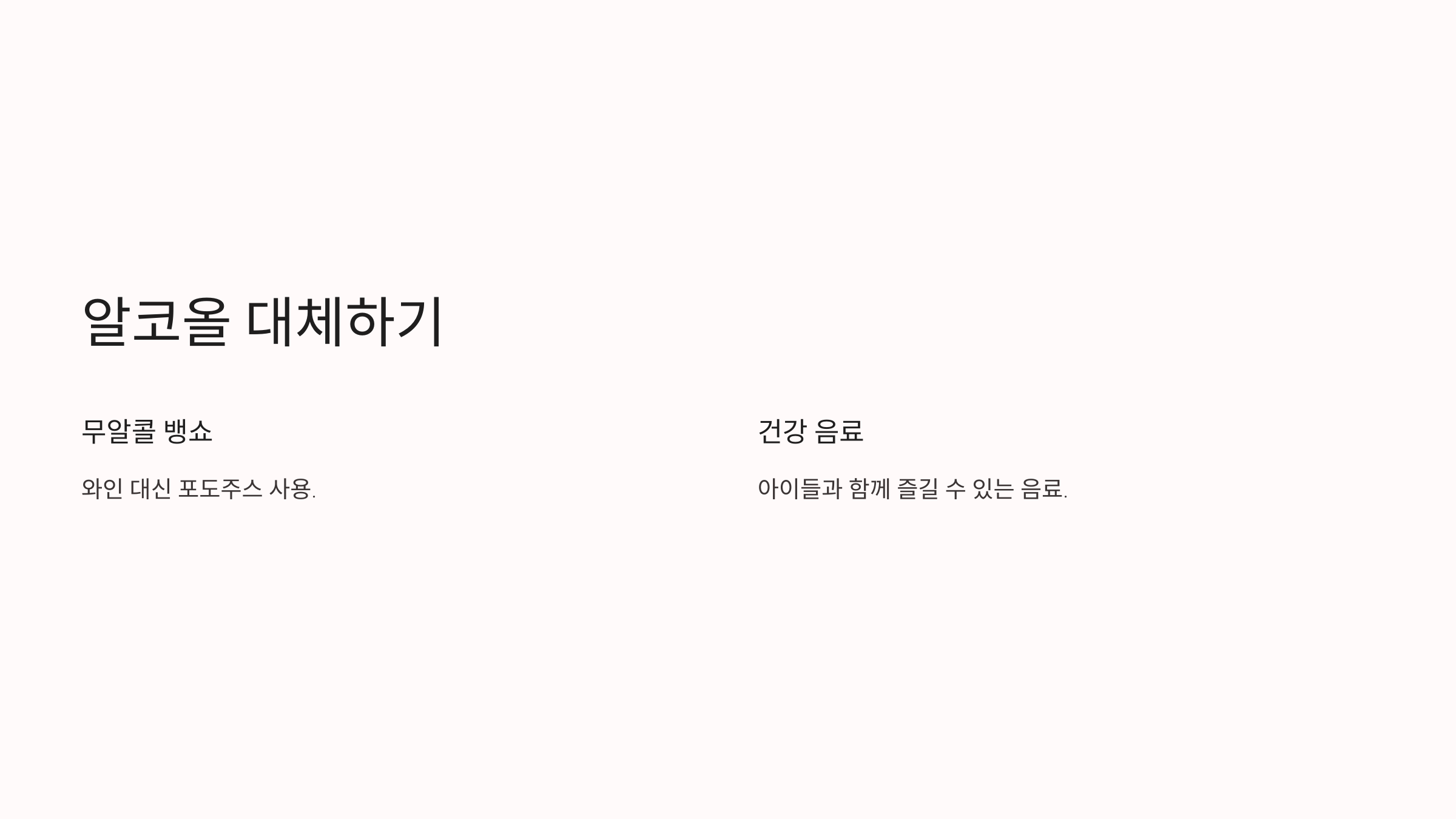 - 알코올을 섭취하지 않는 분들은 와인 대신 포도주스를 사용해 무알콜 뱅쇼를 즐길 수 있습니다.