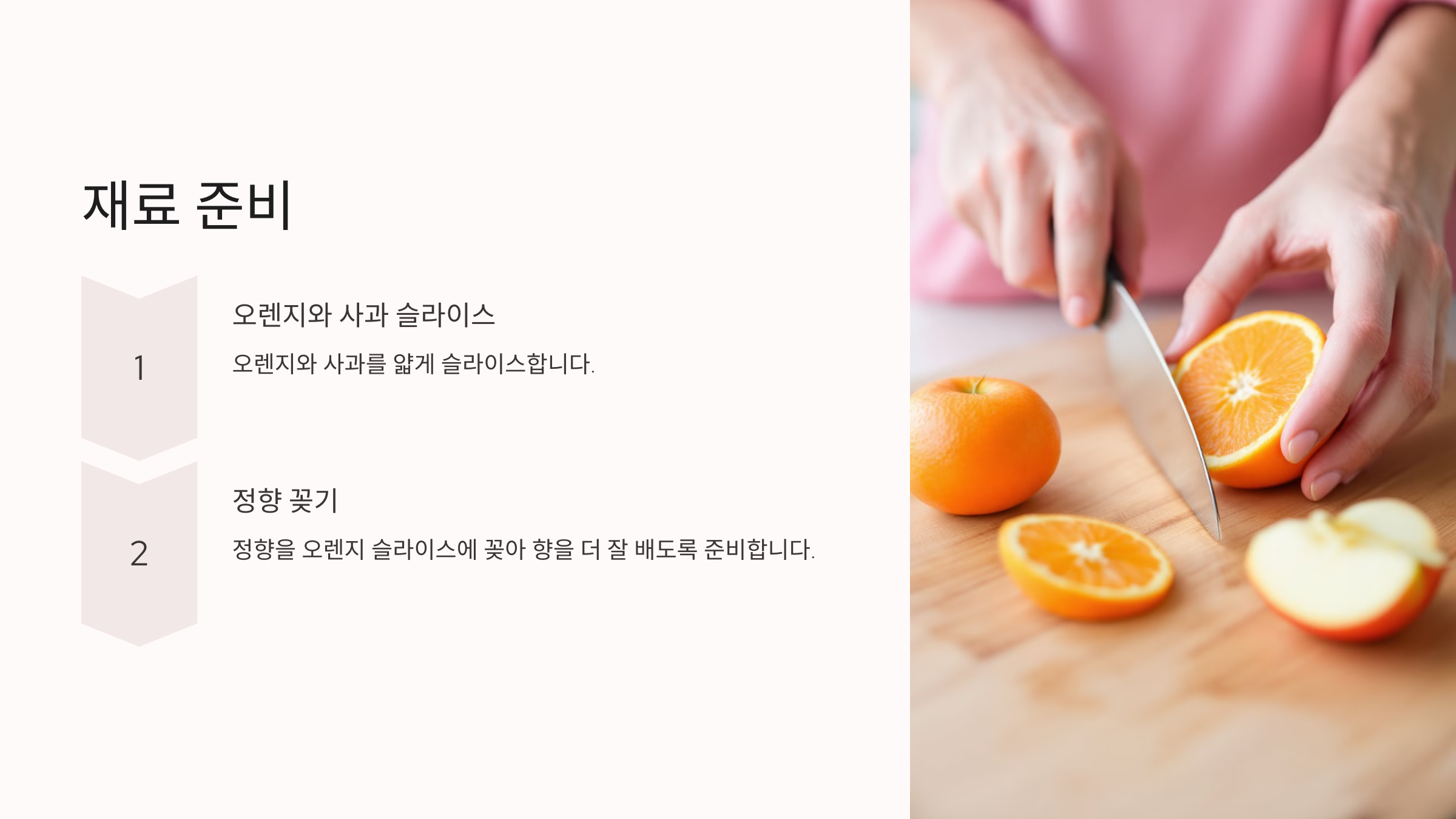 - 오렌지와 사과를 얇게 슬라이스 합니다.
