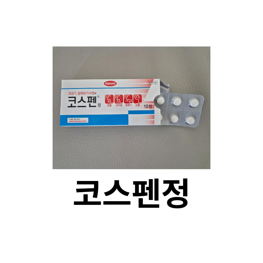 코감기와 비염이 있을 때 약국에서 처방 없이 살 수 있는 일반의약품인 코스펜정에 대해 이야기해 보려고 합니다. 그럼 코스펜정의 성분, 효능, 효과, 용법, 부작용와 주의사항에 대해 알아보도록 하겠습니다.