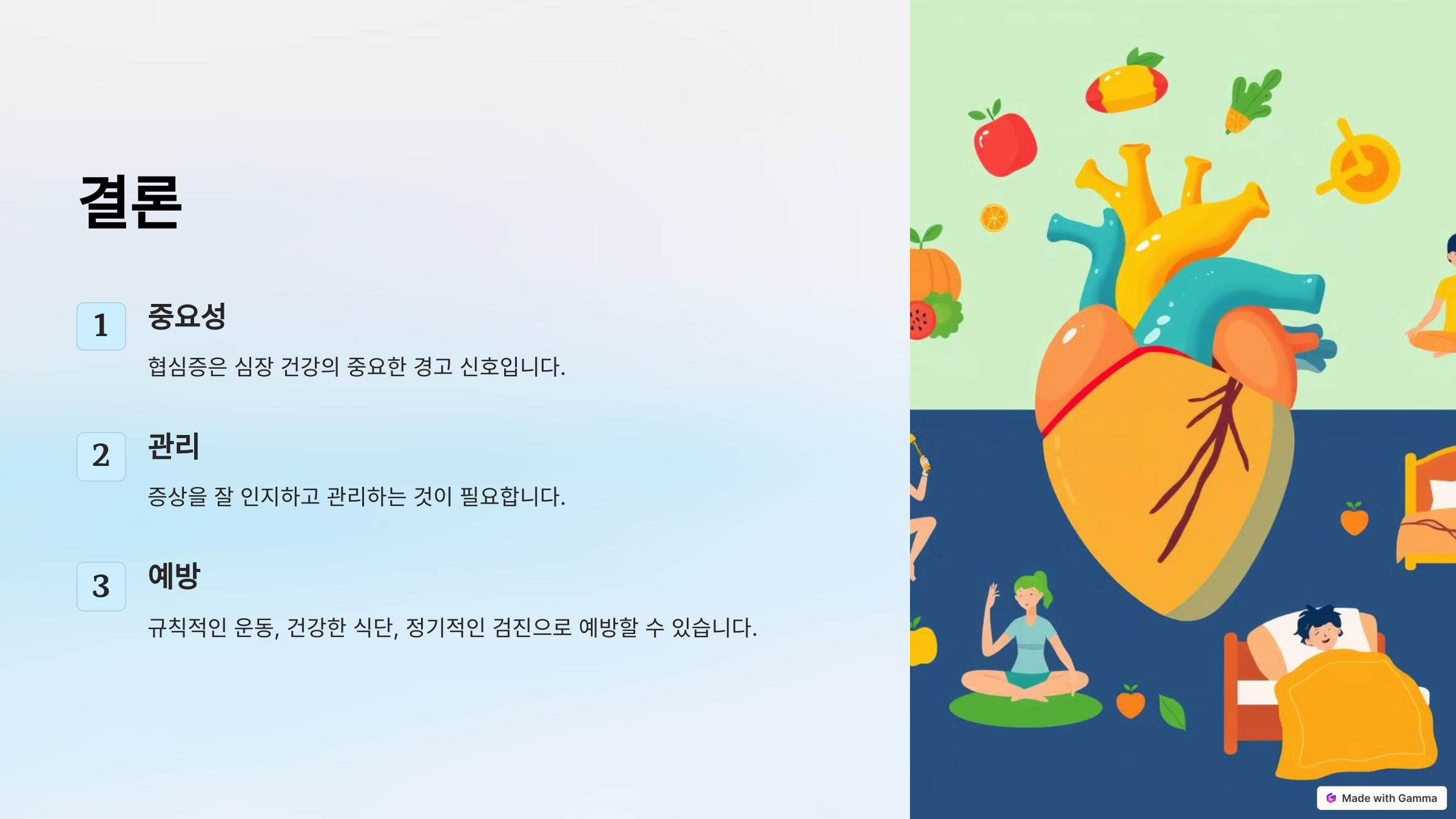 규칙적인 운동, 건강한 식단, 그리고 정기적인 건강 검진을 통해 협심증을 예방할 수 있습니다. 심장이 보내는 작은 신호를 무시하지 말고, 오늘부터 심장 건강을 위한 작은 실천을 시작해보세요. 당신의 심장은 그만한 가치가 있으니까요!